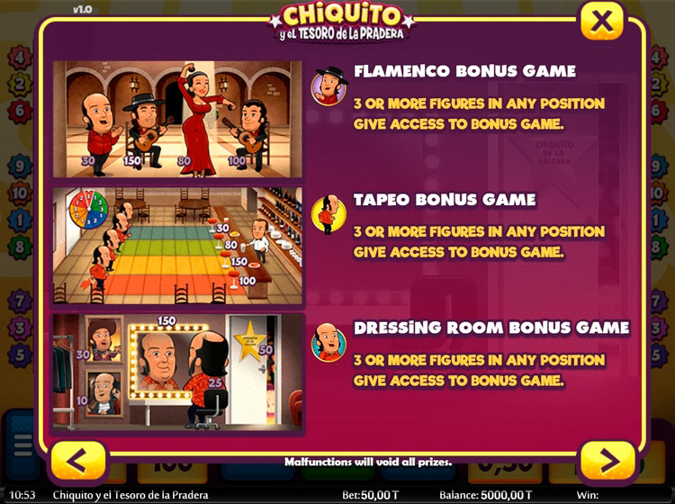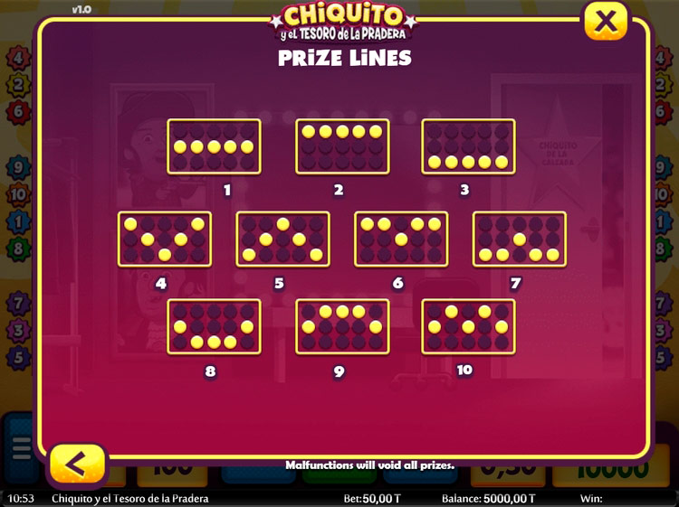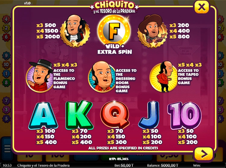 Таблица выплат Chiquito Y El Tesoro De La Pradera