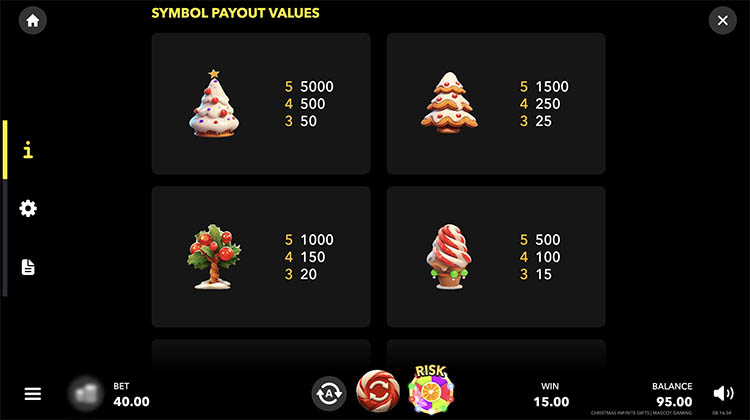 Таблица выплат Christmas Infinite Gifts