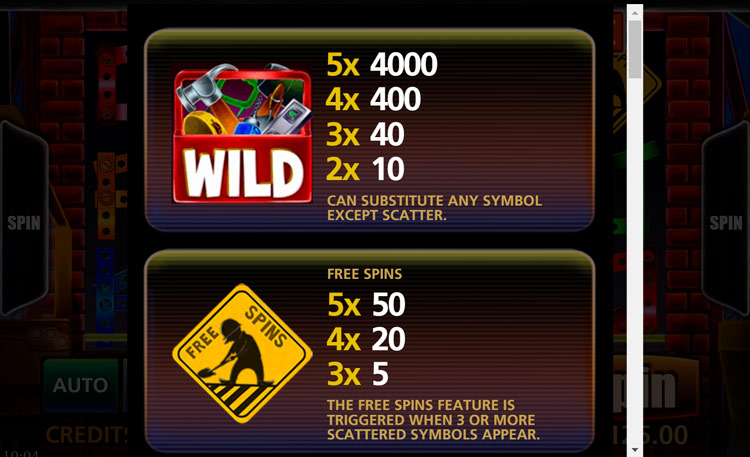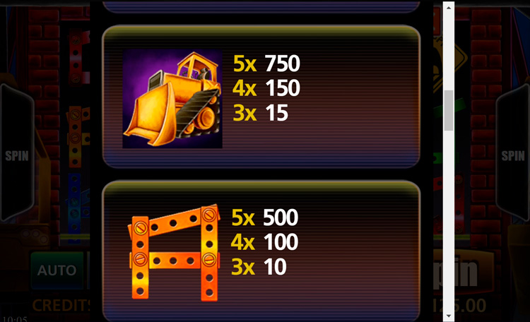 Таблица выплат Construction Cash