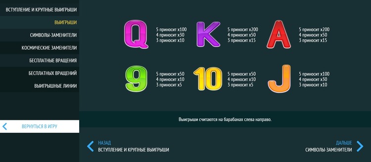 | Апельсин, Виноград, J, Q | - | 10 | 30 | 100 |