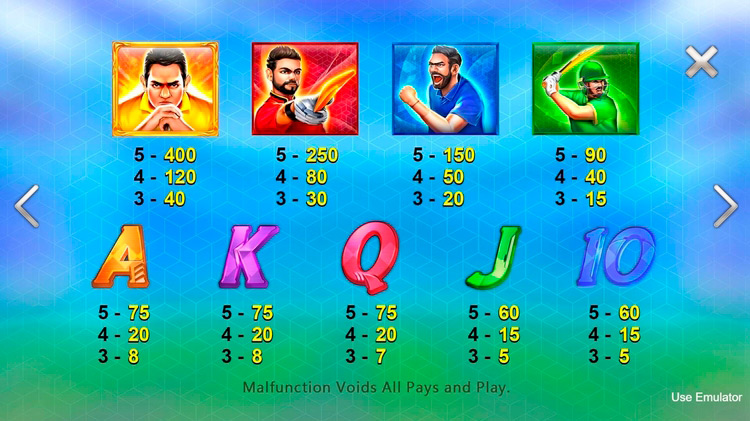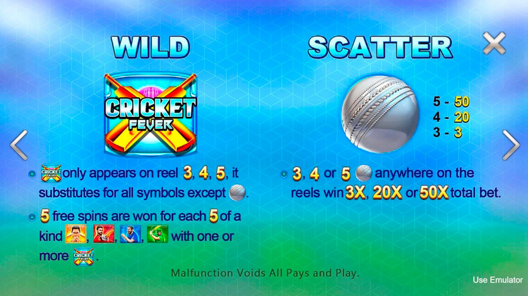 Таблица выплат Cricket Fever