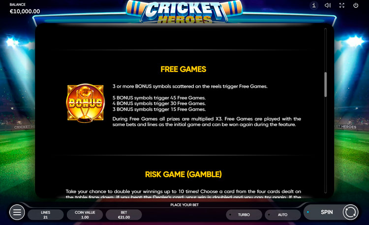 Таблица выплат Cricket Heroes