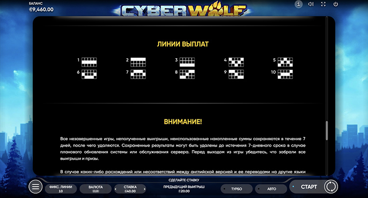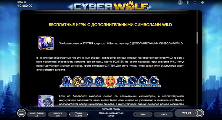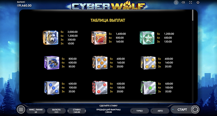 | Воющий волк (Scatter) | - | 80 | 800 | 10 000 |
