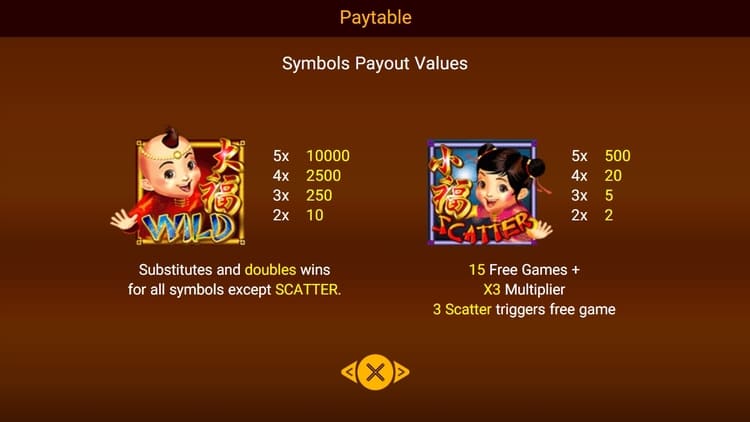 Таблица выплат Da Fu Xiao Fu