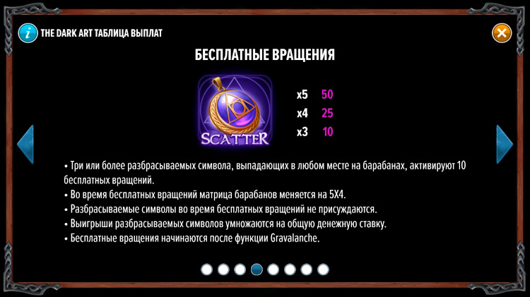 Таблица выплат The Dark Art