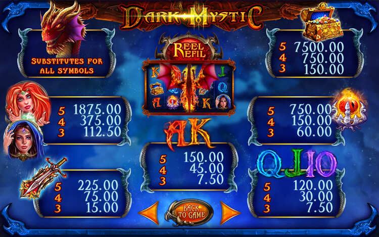 Таблица выплат Dark Mystic