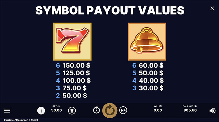 | Семерка | 50 | 75 | 100 | 125 | 150 |