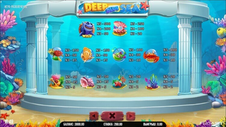 Таблица выплат Deep Blue Sea