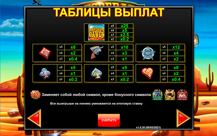 Таблица выплат Desperate Dawgs