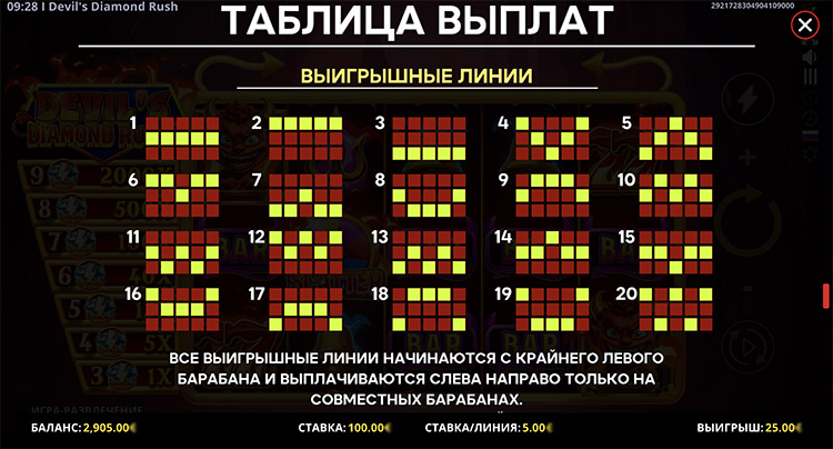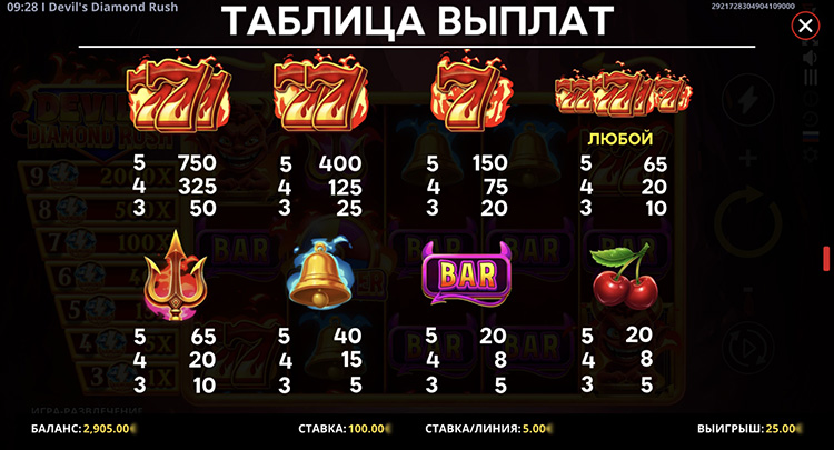 Таблица выплат Devil’s Diamond Rush