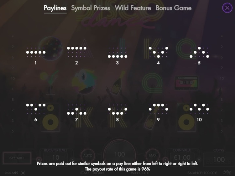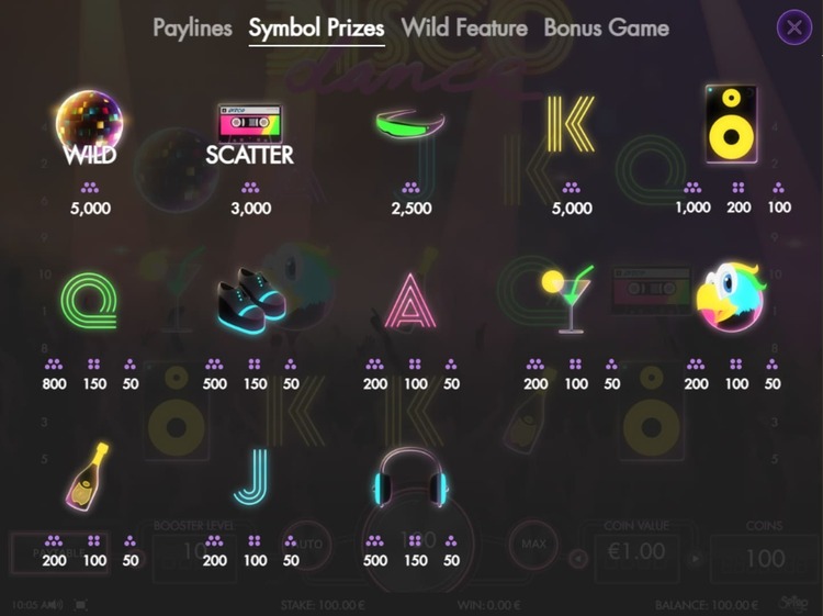 Таблица выплат Disco Dance