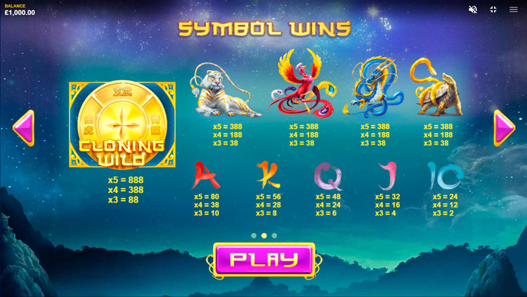 | Черепаха со змеёй, Дракон, Птица, Тигр | 38 | 188 | 388 |