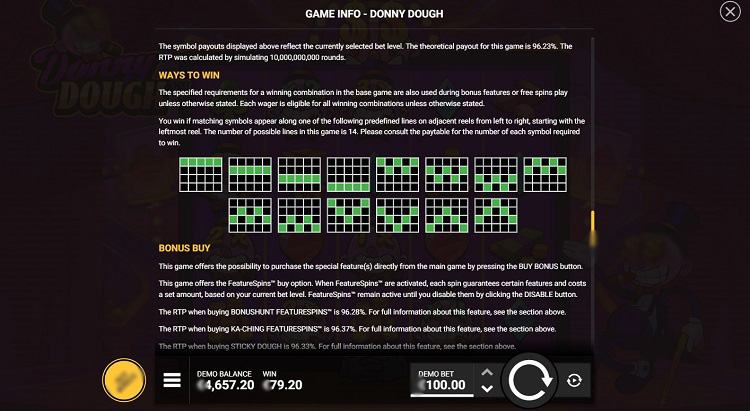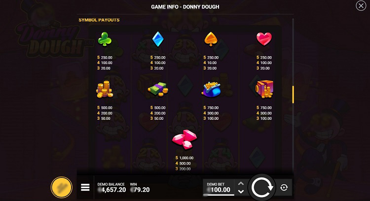 Таблица выплат Donny Dough