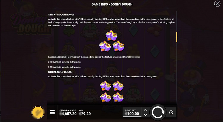 Дополнительные функции слота Donny Dough: