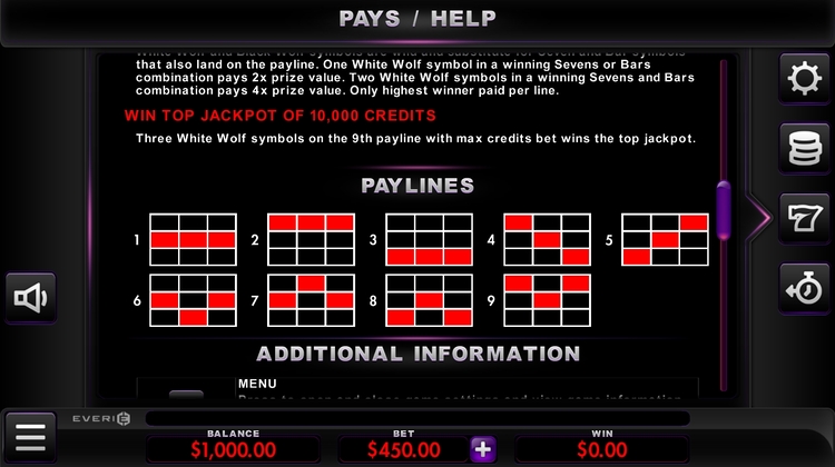 Таблица выплат Double Wolf