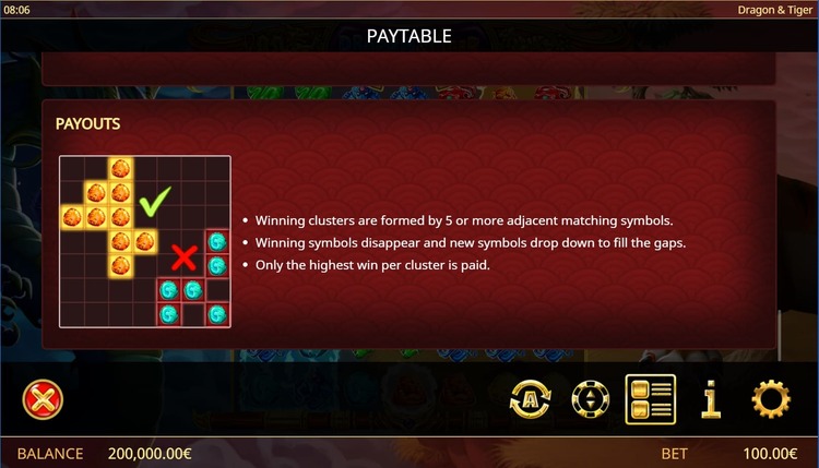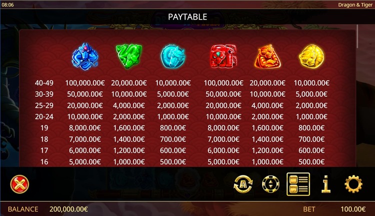| Красный тигр, Синий дракон | 50 | 250 | 2 000 | 4 000 | 8 000 | 20 000 | 100 000 |