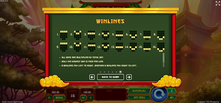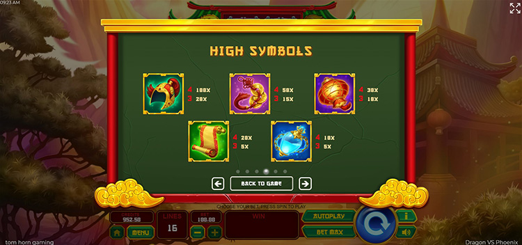 Таблица выплат Dragon vs Phoenix