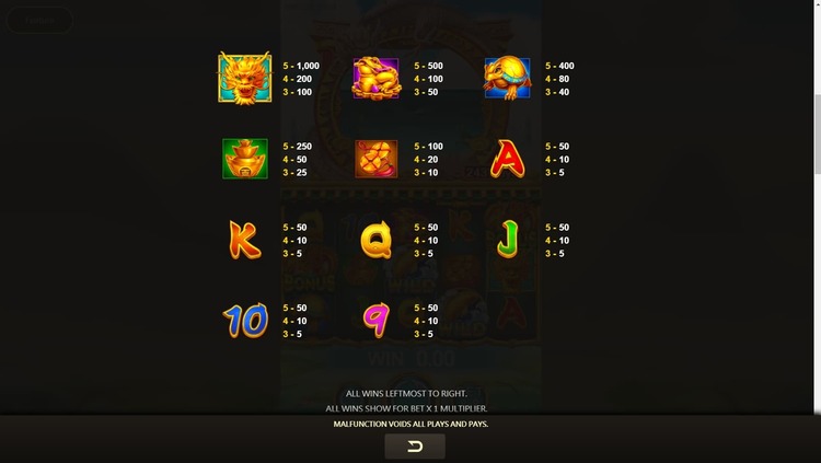 | 9, 10, J, Q, K, A, Дракон | 5 | 10 | 50 |