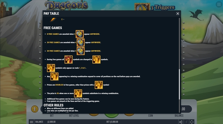 Таблица выплат Dragon’s Realm