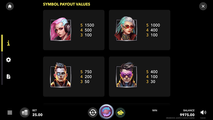 Таблица выплат Dreamshock: Jackpot X