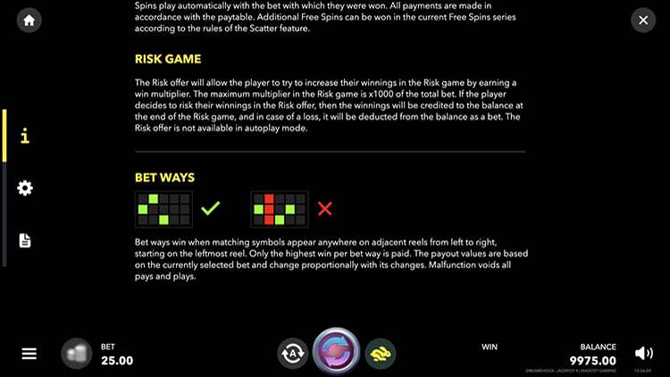 Дополнительные функции слота Dreamshock: Jackpot X: