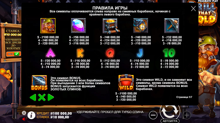 | Золотоискатель, динамит (Wild) | 20 000 | 40 000 | 100 000 |