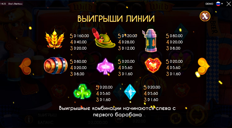 Таблица выплат Elsa’s Bierhaus