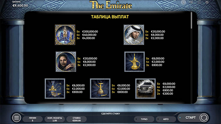 | Пальма Джумейра (Scatter) | - | 400 | 2000 | 10 000 |