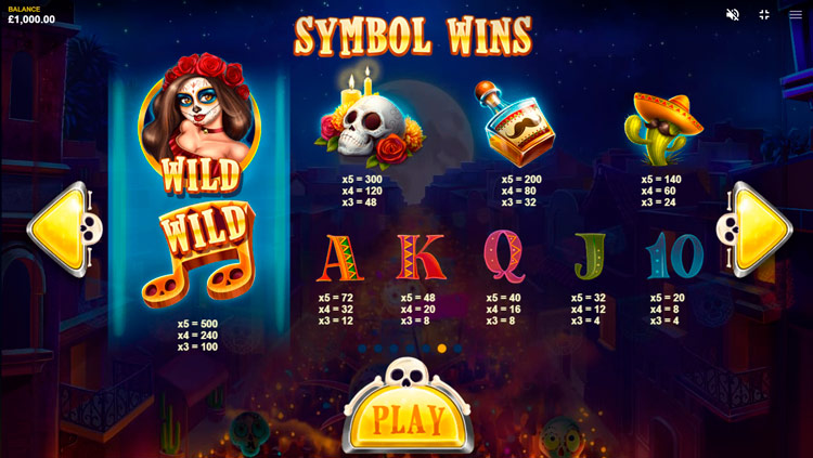 Таблица выплат Esqueleto Mariachi