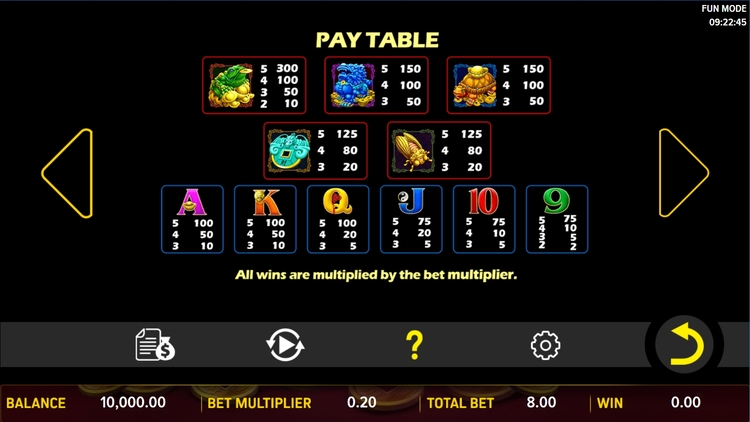 Таблица выплат Eternal Fortune