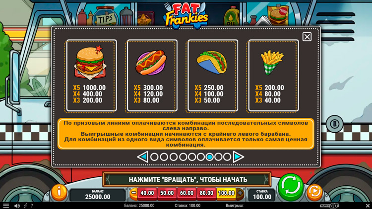 Таблица выплат Fat Frankies