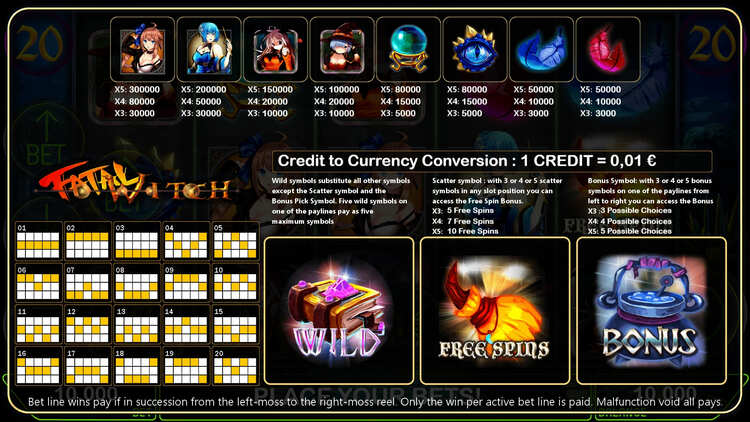 Таблица выплат Fatal Witchies