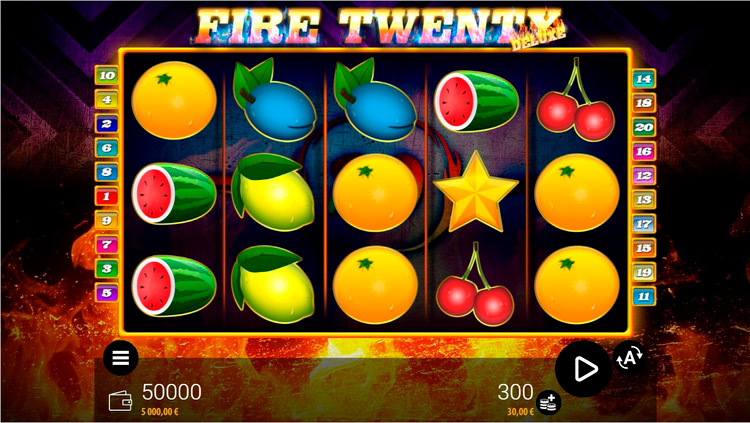 Таблица выплат Fire Twenty