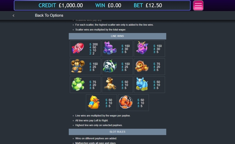 Таблица выплат Fluffy in Space
