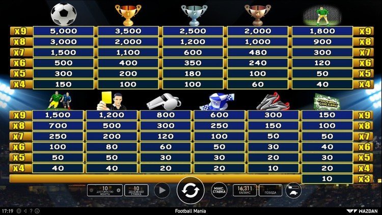 | Футболисты | - | 40 | 50 | 100 | 250 | 700 | 1500 |