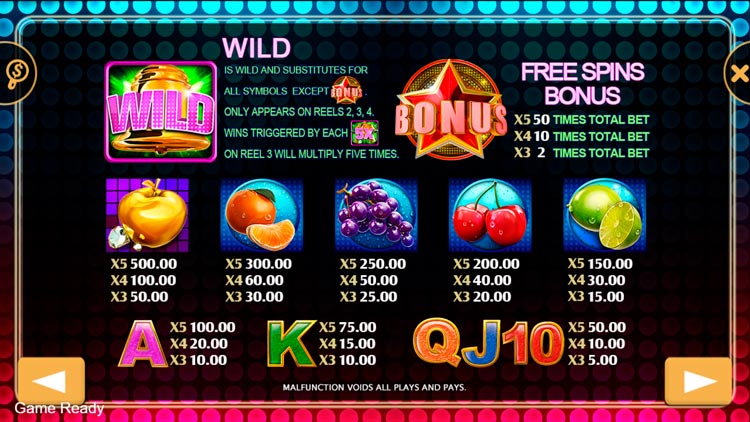 Таблица выплат Fruit Party