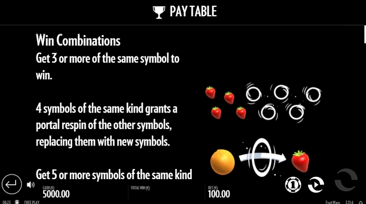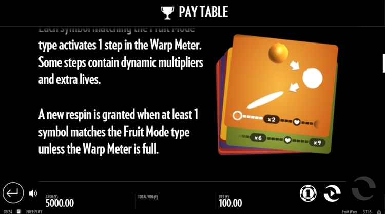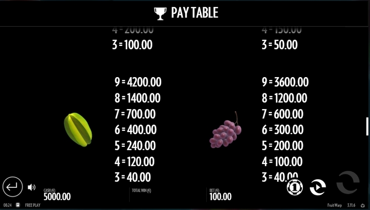 Таблица выплат Fruit Warp