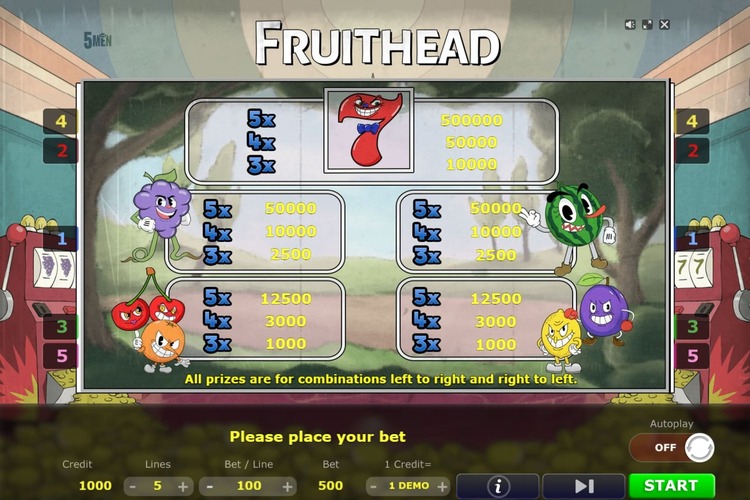 Таблица выплат Fruithead