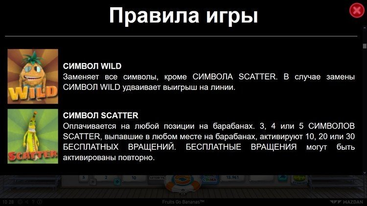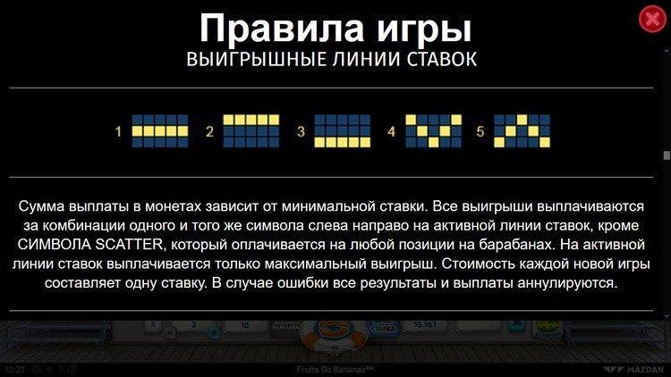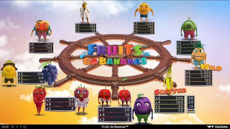 Таблица выплат Fruits Go Bananas