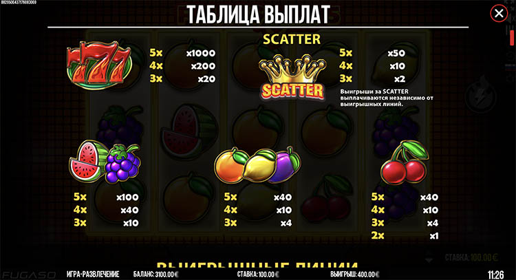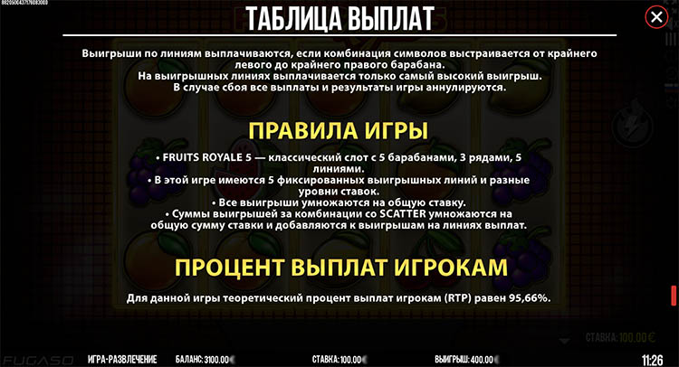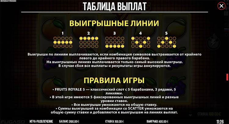 Таблица выплат Fruits Royale 5