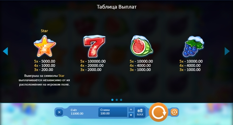 Таблица выплат Fruits’N’Stars: Holiday Edition