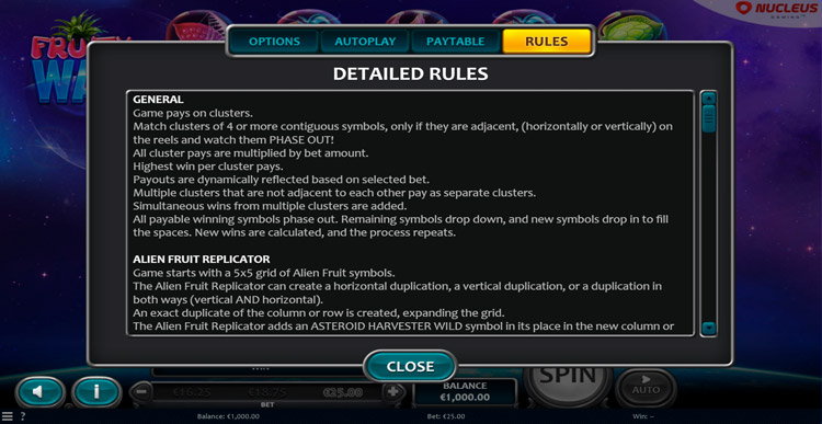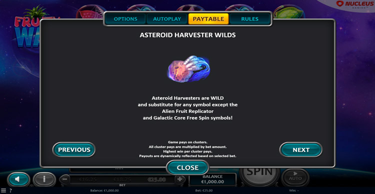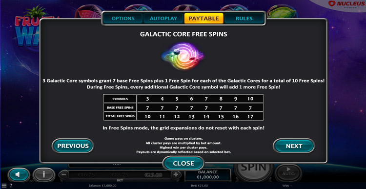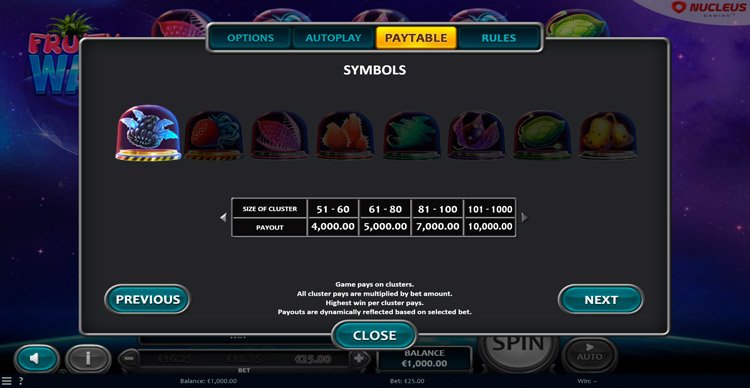Таблица выплат Fruity Way