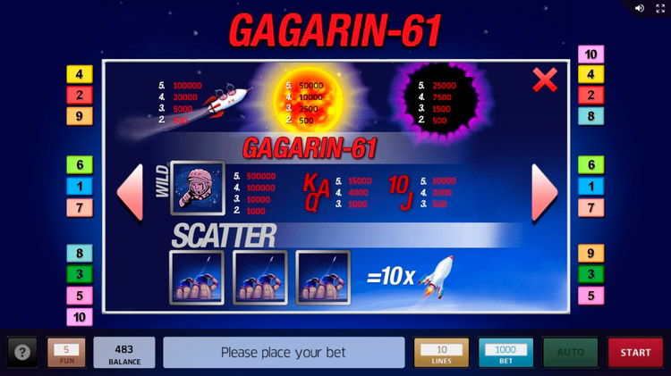 Таблица выплат Gagarin — 61