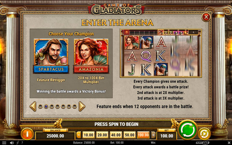 Таблица выплат Game of Gladiators