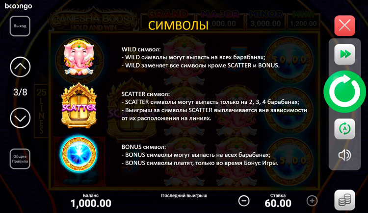 Таблица выплат Ganesha Boost