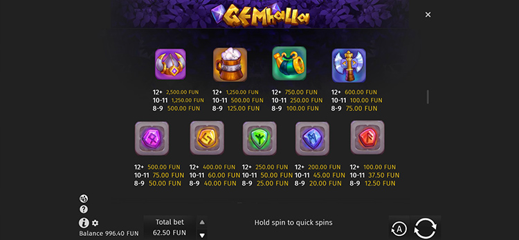 Таблица выплат Gemhalla