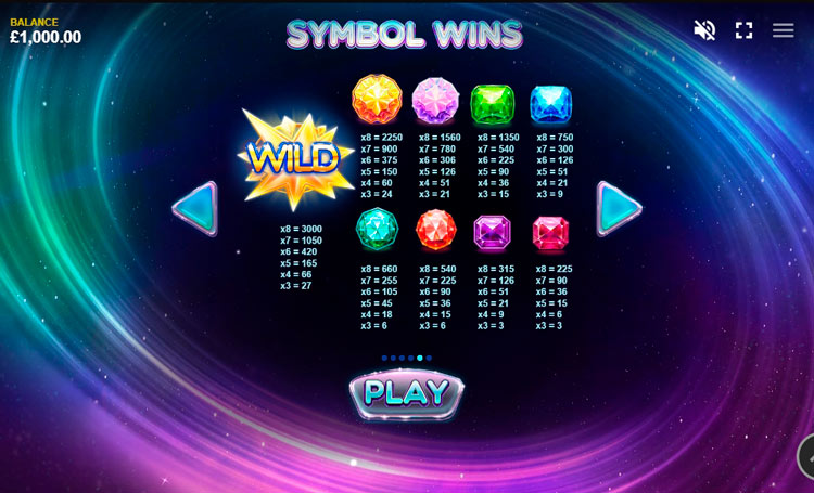 Таблица выплат Gems Gone Wild Power Reels