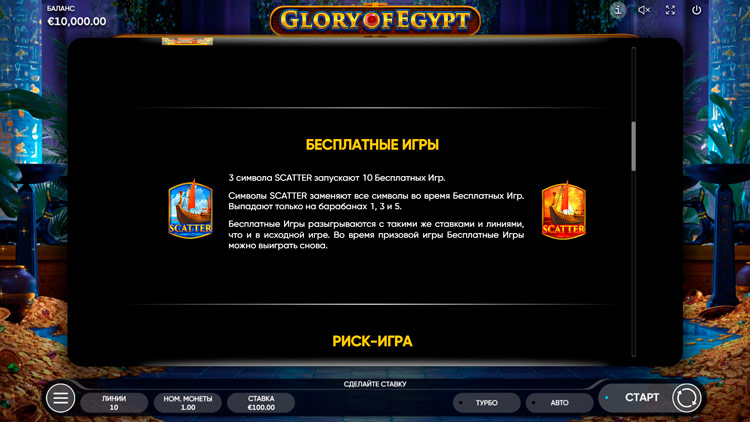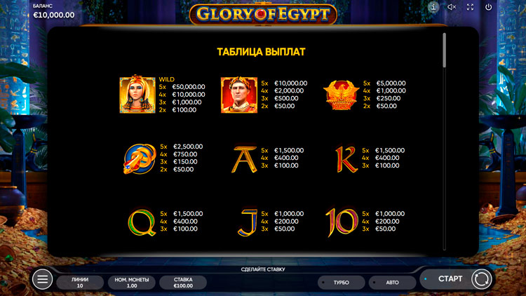 Таблица выплат Glory of Egypt