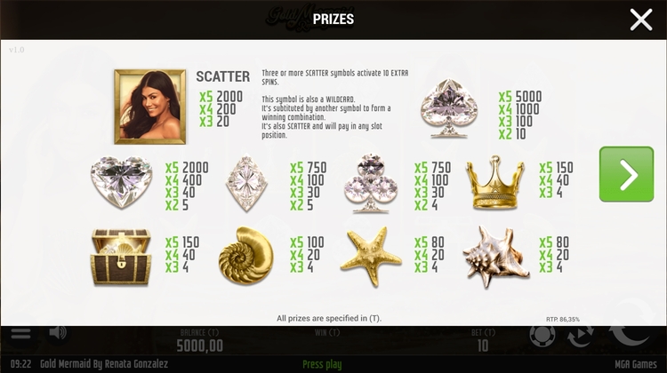 Таблица выплат Gold Mermaid By Renata Gonzalez
