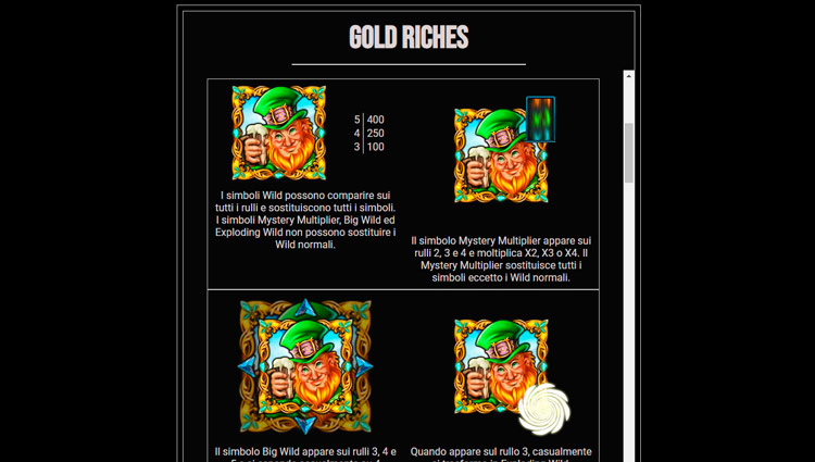 Таблица выплат Gold Riches